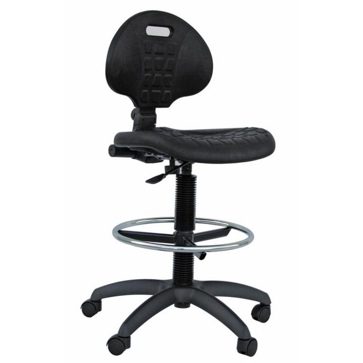 La seduta, girevole a 360°, è prodotta in morbido poliuretano nero, facilissimo da pulire e molto resistente nel tempo. Gli sgabelli LAB sono dotati di un comodo poggiapiedi tutto tondo, che consente una seduta comoda, confortevole ed allo stesso tempo stabile e sicura.