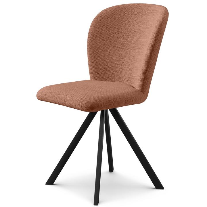 Sedia da pranzo con base a 4 gambe in tubo d'acciaio verniciato a polveri epossidiche, a sezione rettangolare. La seduta della sedia a scocca unica, è realizzata in multistrati di faggio e pioppo con schienale in tondino d'acciaio, rivestita in gomma poliuretanica e tappezzata in Microfibra, Velluto o ecopelle.